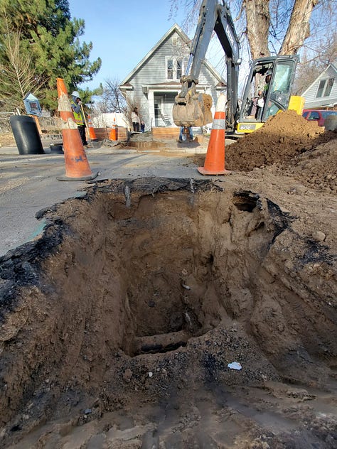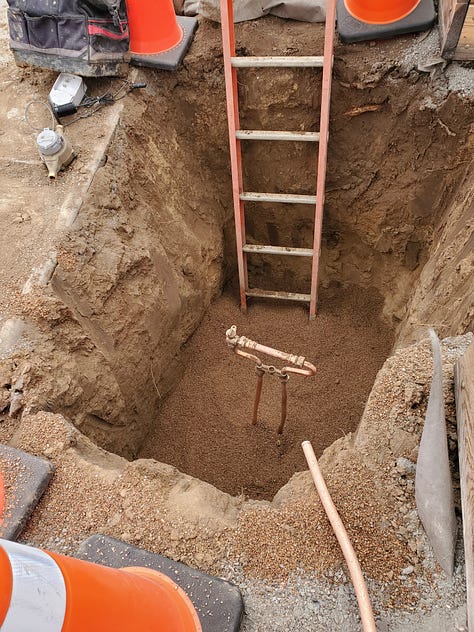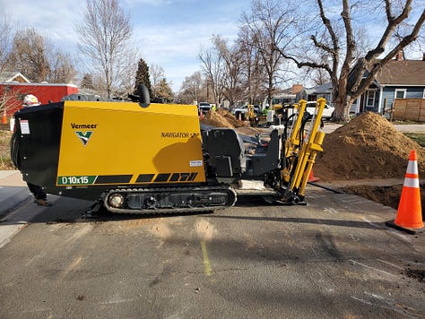 So I’m glad for the additional treatment barrier I could elect to install under my sink, and for the industry that undergirds the manufacture and consumer safety testing of such products. At the same time, I’m also grateful for the city’s efforts to remove those few feet of lead line, despite also having a filter. I can go to Lowes and pick up a filter cartridge; I can’t start digging up my street with a backhoe or drill 50 feet horizontally underneath my house and yard, like these guys: